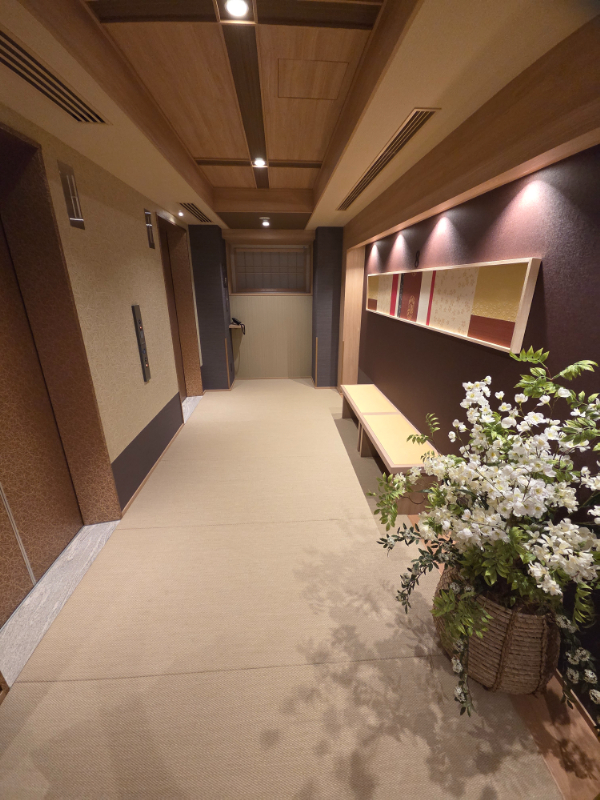 こちらは入り口に入って以降、エレベーター、廊下、大浴場、部屋の中等、ホテル内の何処に行っても全て畳の部屋になっています。