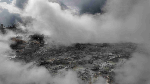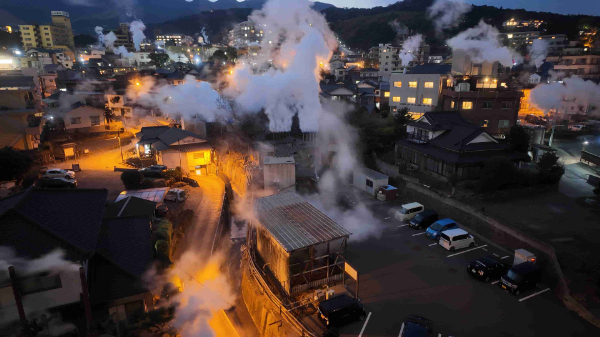 見渡す限り街中から温泉の煙が上がっていて、また、硫黄の匂いが立ち込めていて、別世界のようです。