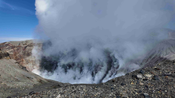 阿蘇山に来るのは高校の修学旅行以来ですが、こんなんやったっけ?と思う位に人も多いし、山からの煙も目や喉が痛くなる位にたくさん出ています。