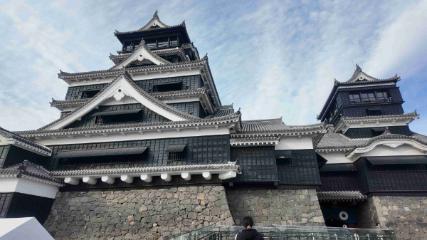 現存天守ではありませんが、白黒ハッキリとした外観が美しく、また、2016年の熊本地震で崩れた箇所の修復状況も見てみたかった為、予定外でしたが翌朝9時に開場して直ぐに行きます。