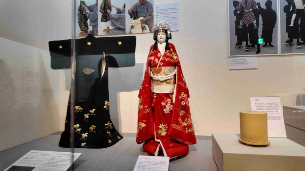 文楽は人形浄瑠璃とも言われますが、語り手である太夫と三味線の掛け合わせによる音声に合わせて、下の写真のような人形を基本的に3人1組で操る事で、物語を演じる日本の伝統芸能です。
