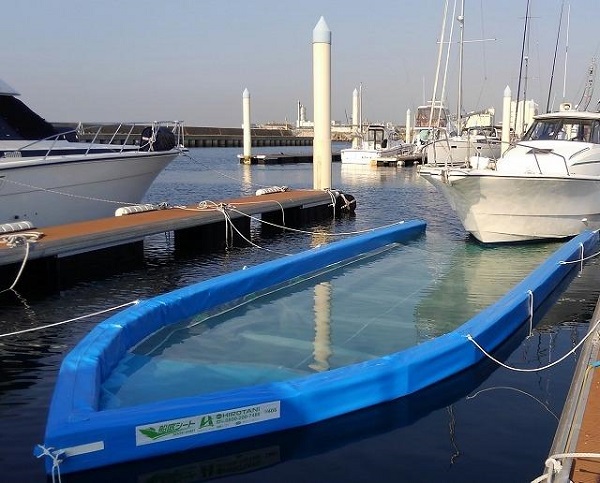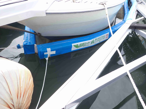 ただ、和歌山市のボートパークでも特に西浜の係留施設にはかなりの割合でこちらの船底シートが設置されており、またこの商品で無くてもご自分でブルーシートで同様の囲いを作っている方が多くおられます。